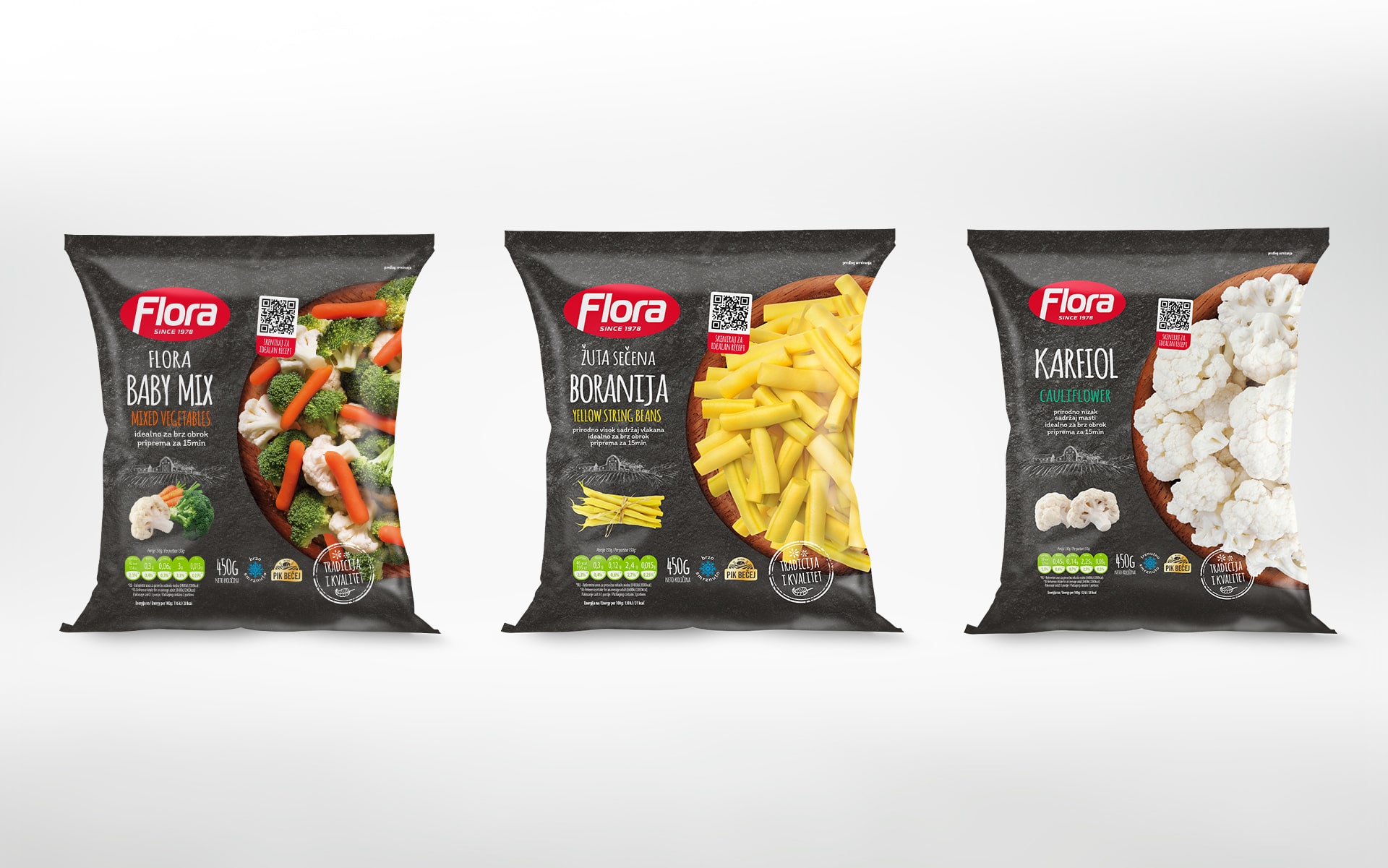 Flora is a brand with a long tradition of producing frozen fruits and vegetables. We redesigned the brand’s identity while keeping a connection with the original visual. The project included a whole new packaging design concept and product photography production.